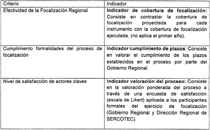 Artículo 9°.- Déjese establecido que una vez recibido el informe final de focalización, Sercotec realizará una evaluación sobre la base de los siguientes criterios e indicadores con los que se realizará el seguimiento del proceso: