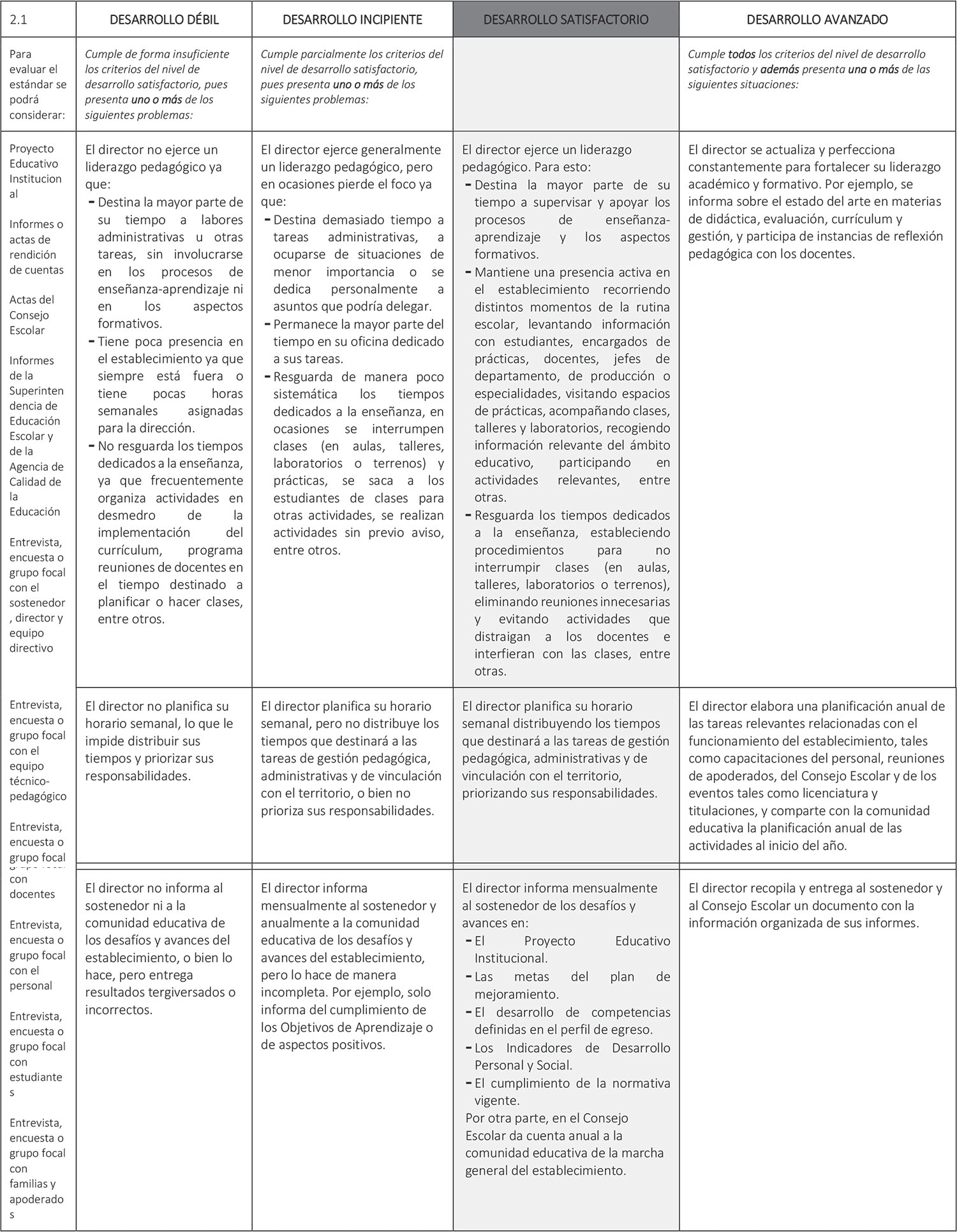 Estándar 2.1: El director centra su gestión en el logro de los objetivos académicos y formativos del establecimiento, y se responsabiliza por sus resultados.