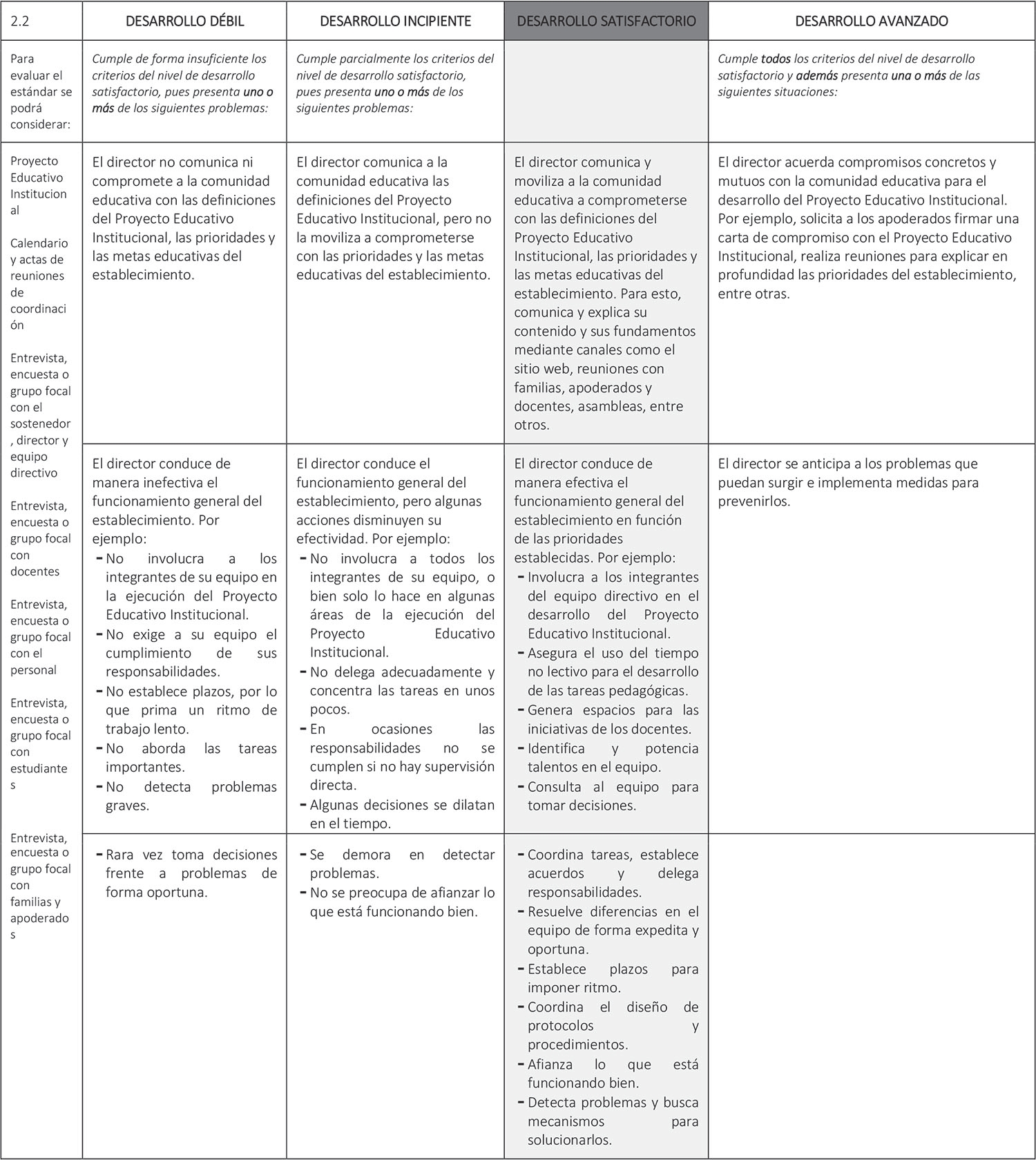 Estándar 2.2: El director conduce de manera efectiva el funcionamiento general del establecimiento.