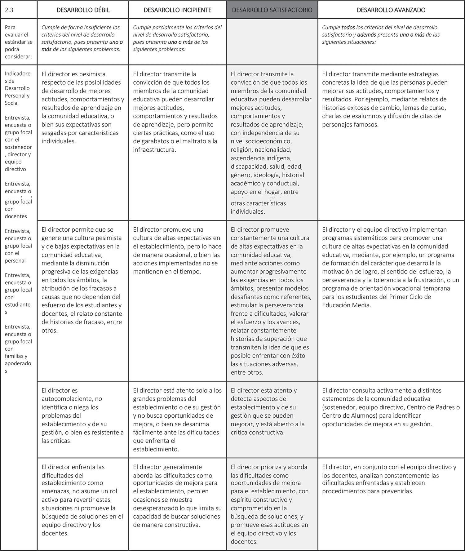 Estándar 2.3: El director instaura una cultura de altas expectativas y moviliza a la comunidad educativa hacia la mejora continua.