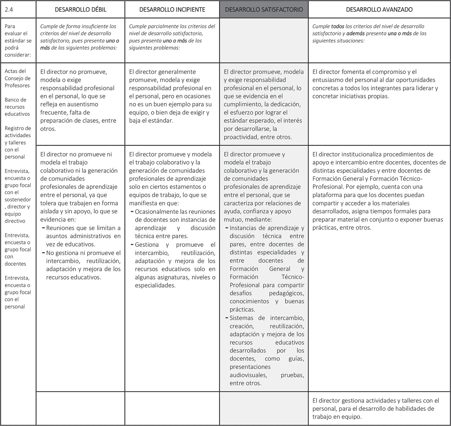 Estándar 2.4: El director instaura en el personal una cultura de compromiso y colaboración con la tarea educativa.