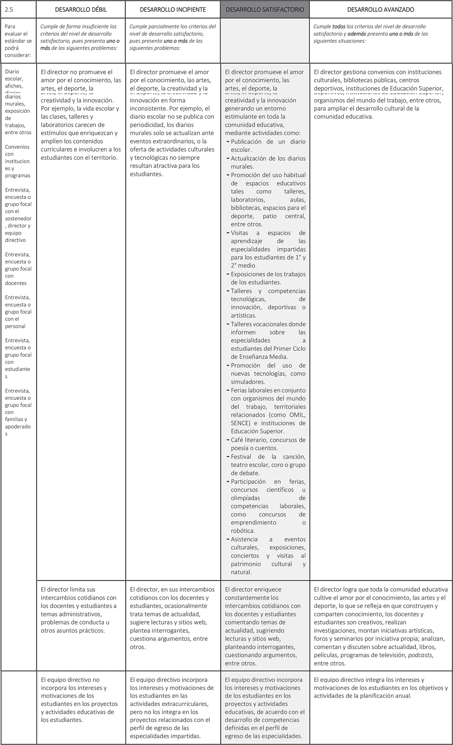 Estándar 2.5: El director instaura un ambiente cultural y académicamente estimulante.
