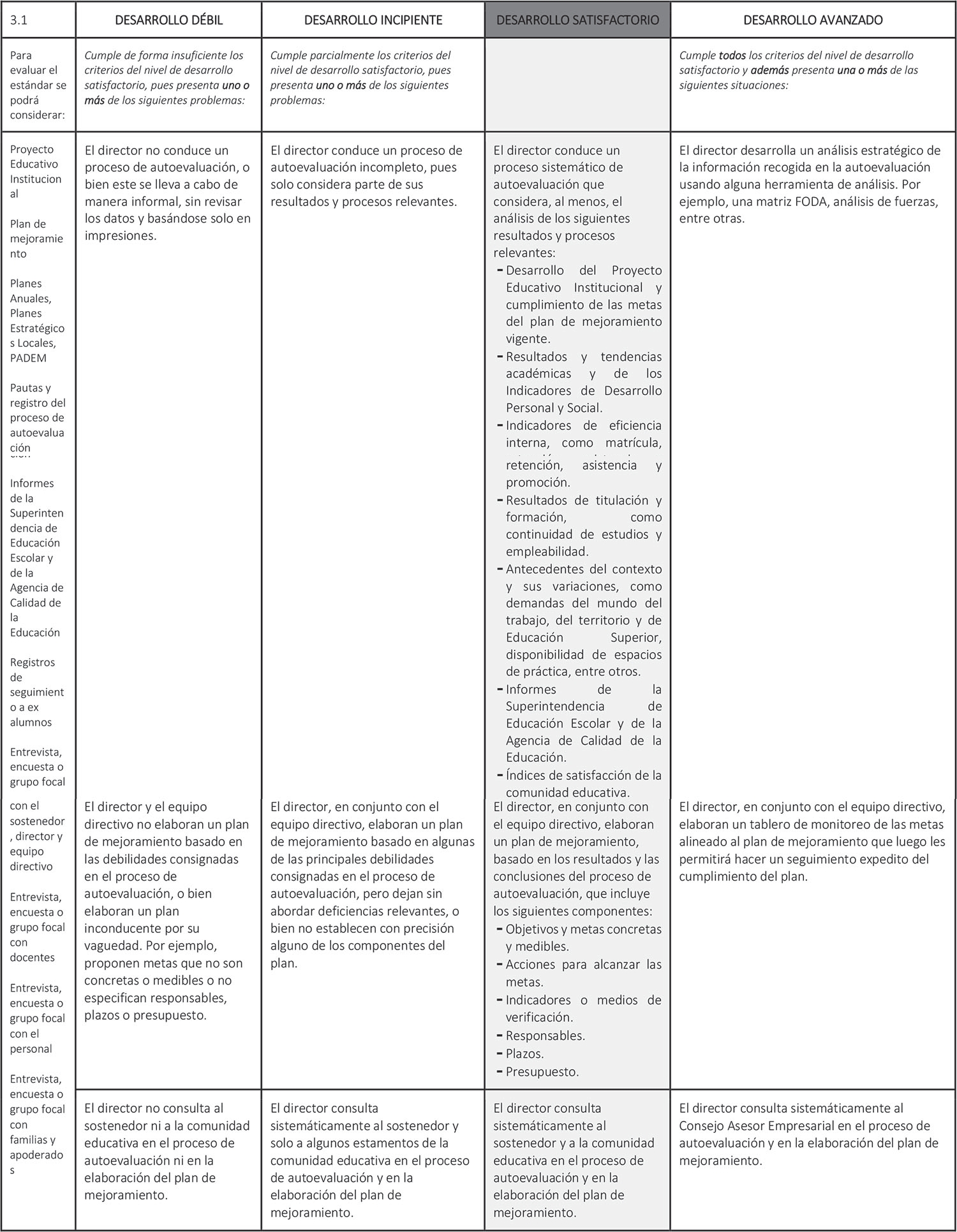 Estándar 3.1: El director elabora un plan de mejoramiento de acuerdo con el Proyecto Educativo Institucional.