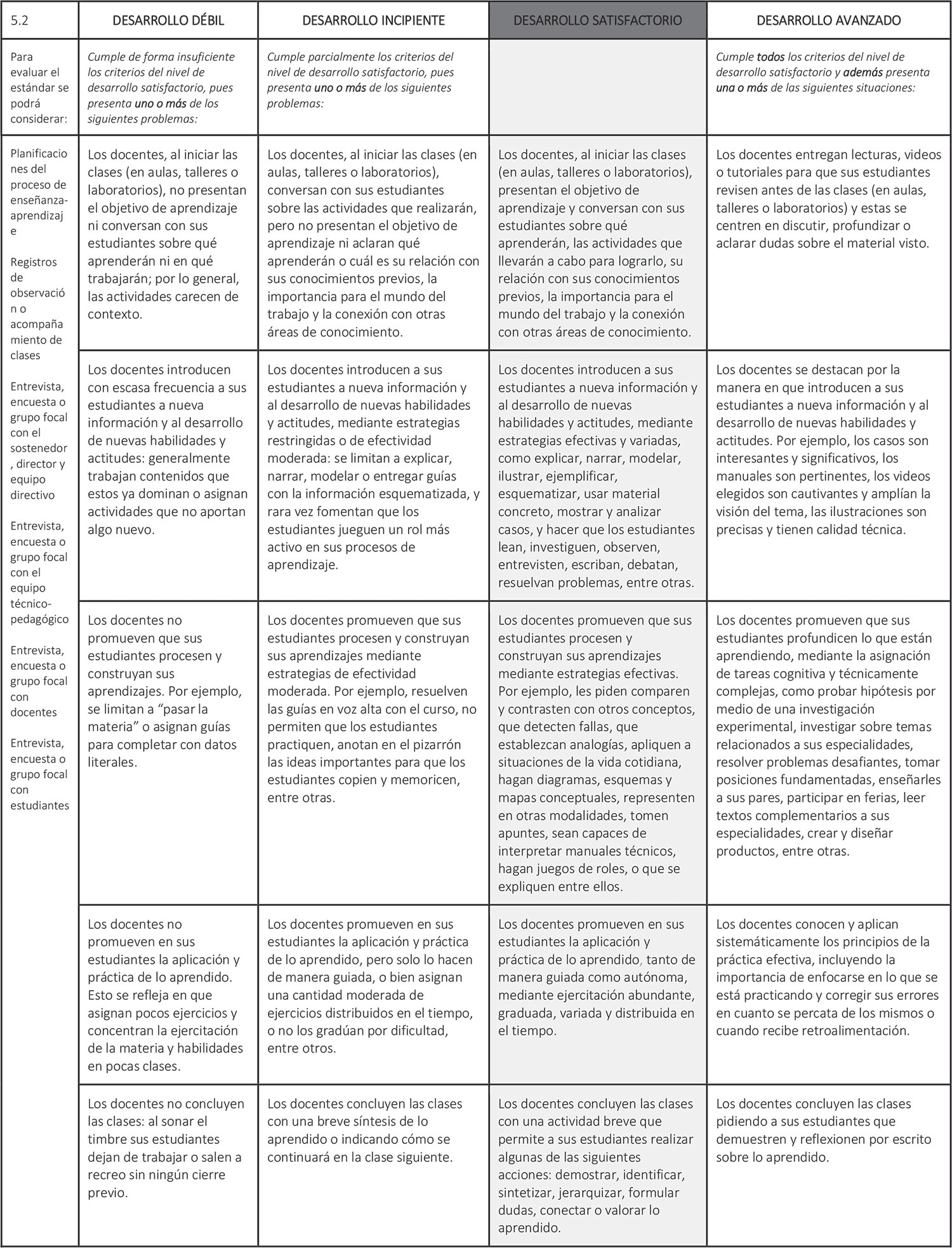 Estándar 5.2: Los docentes planifican y desarrollan las clases usando estrategias efectivas para el logro de los Objetivos de Aprendizaje y el desarrollo de competencias definidas en el perfil de egreso.