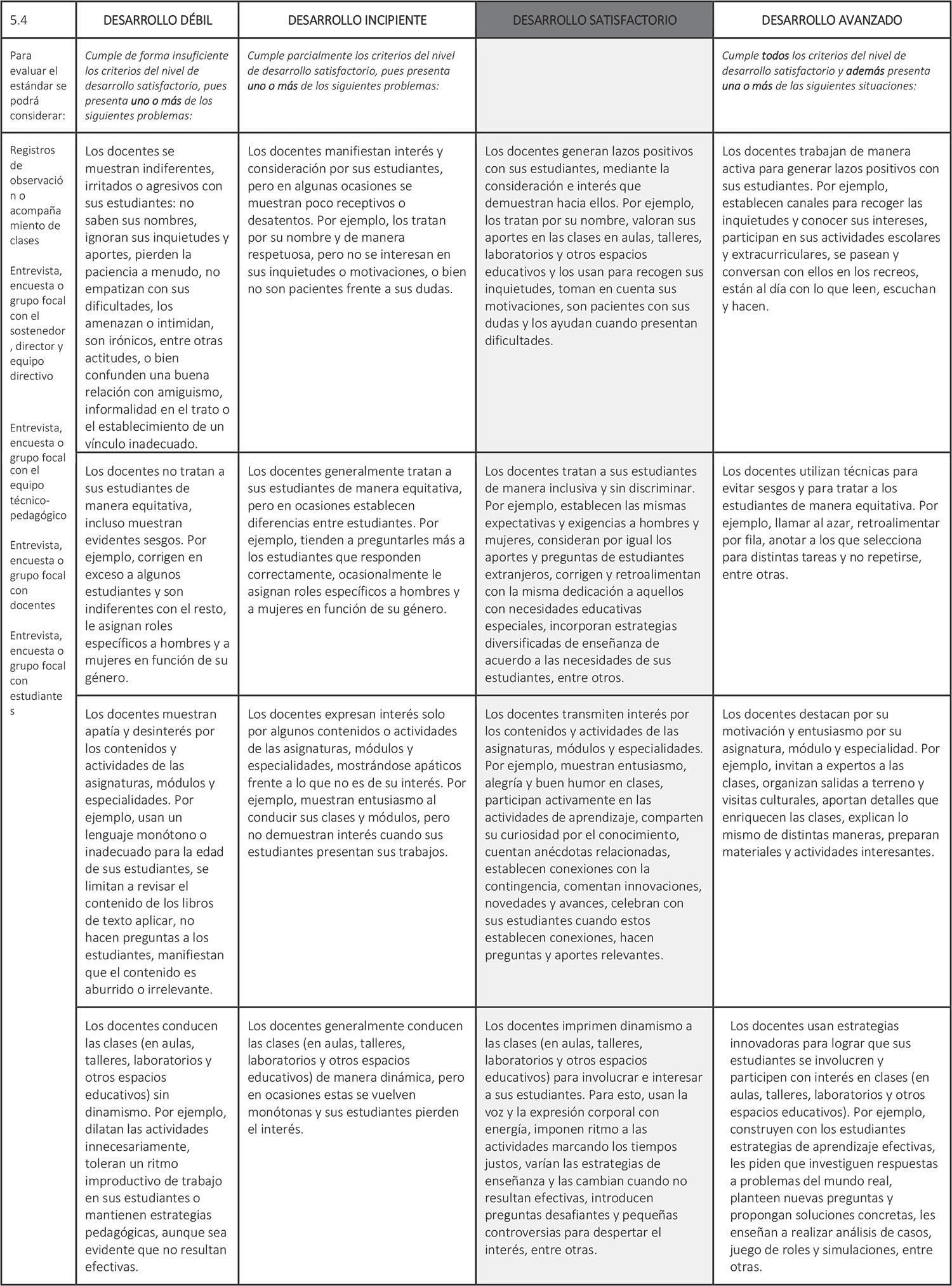 Estándar 5.4: Los docentes establecen vínculos pedagógicos positivos con todos sus estudiantes y generan motivación por las asignaturas y especialidades.
