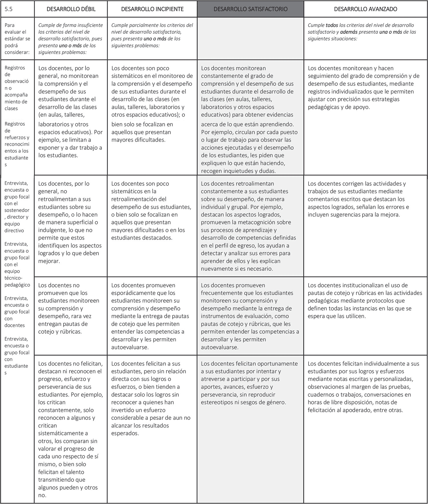 Estándar 5.5: Los docentes monitorean el aprendizaje de sus estudiantes y les entregan retroalimentación constante.