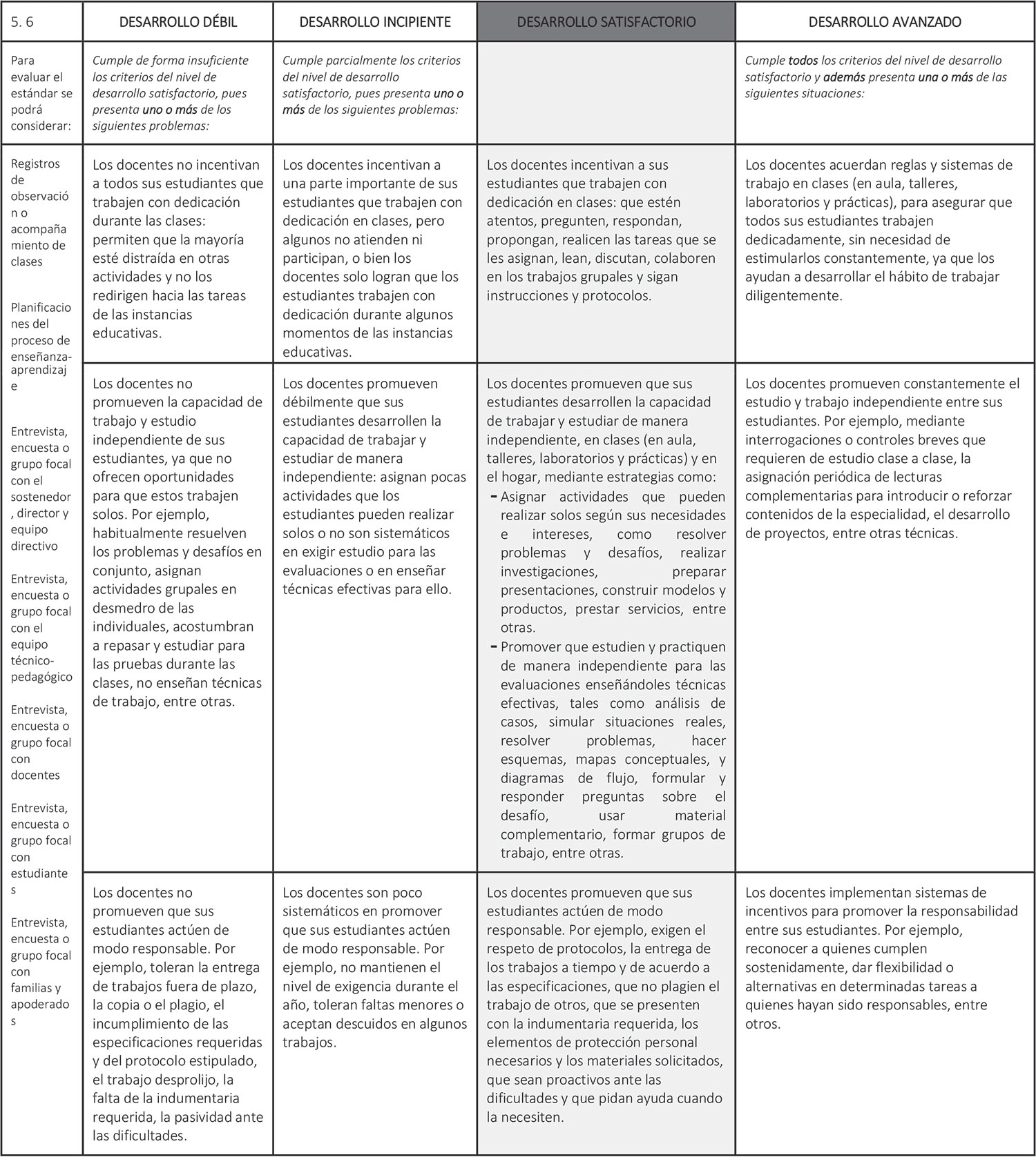 Estándar 5.6: Los docentes promueven el estudio, el trabajo independiente y la responsabilidad de todos sus estudiantes.