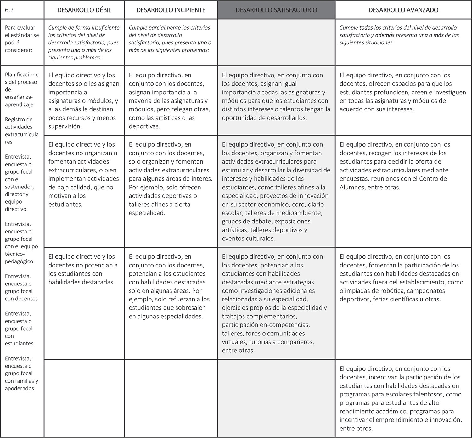 Estándar 6.2: El equipo directivo, en conjunto con los docentes, implementan estrategias efectivas para potenciar a los estudiantes con intereses diversos y habilidades destacadas.