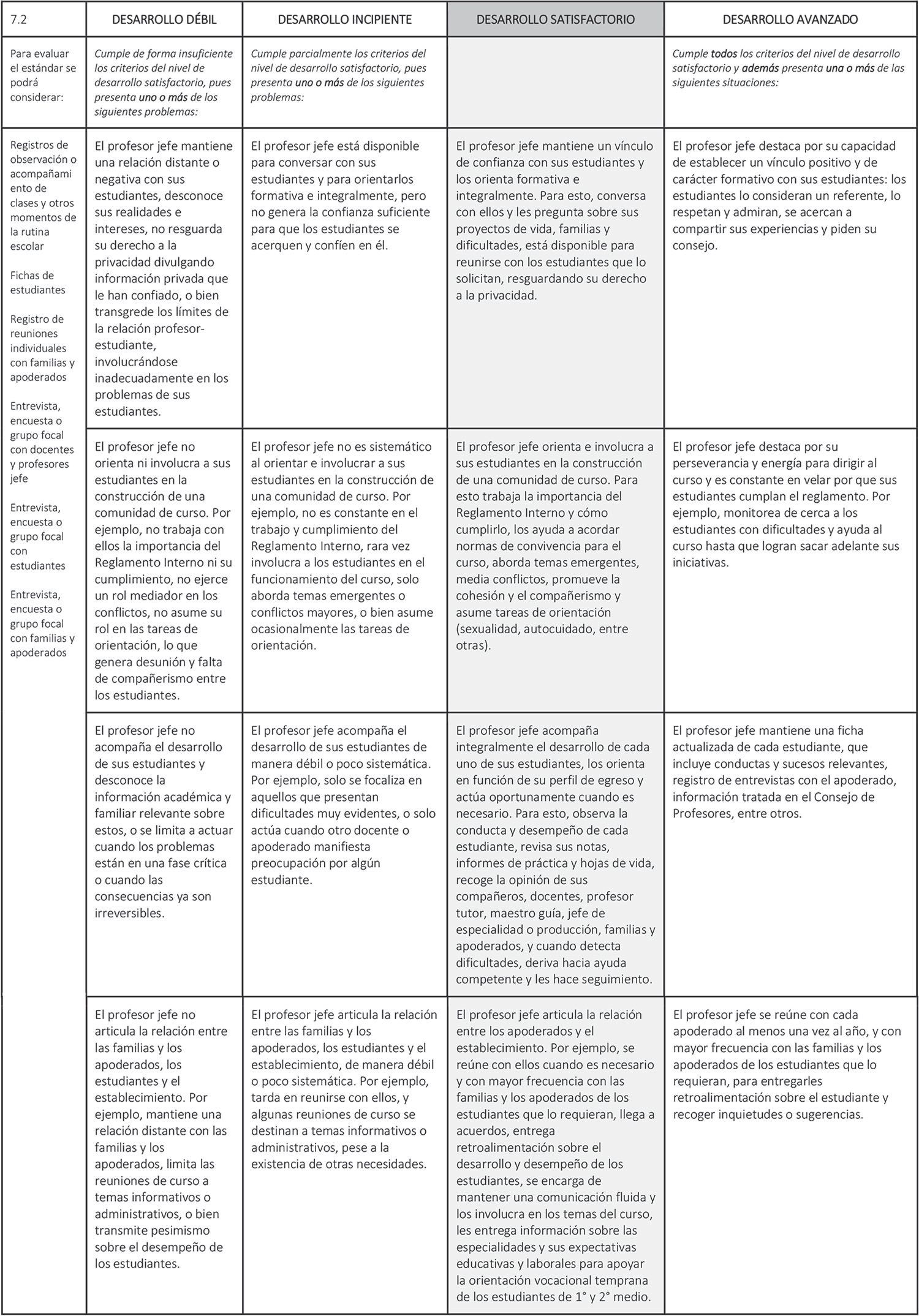 Estándar 7.2: El profesor jefe acompaña activamente a los estudiantes de su curso y los orienta formativa e integralmente.