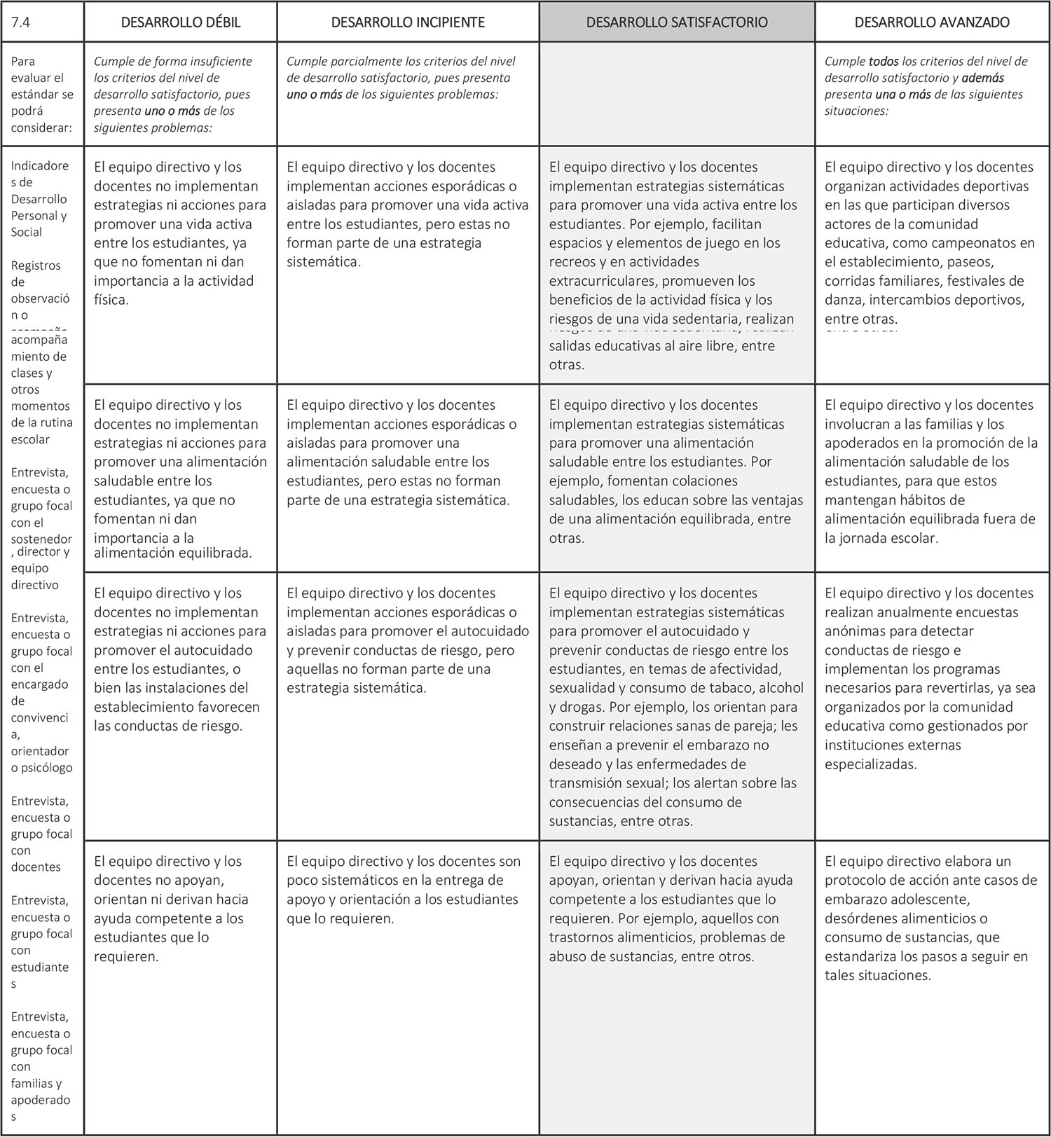 Estándar 7.4: El equipo directivo y los docentes promueven hábitos de vida saludable y conductas
