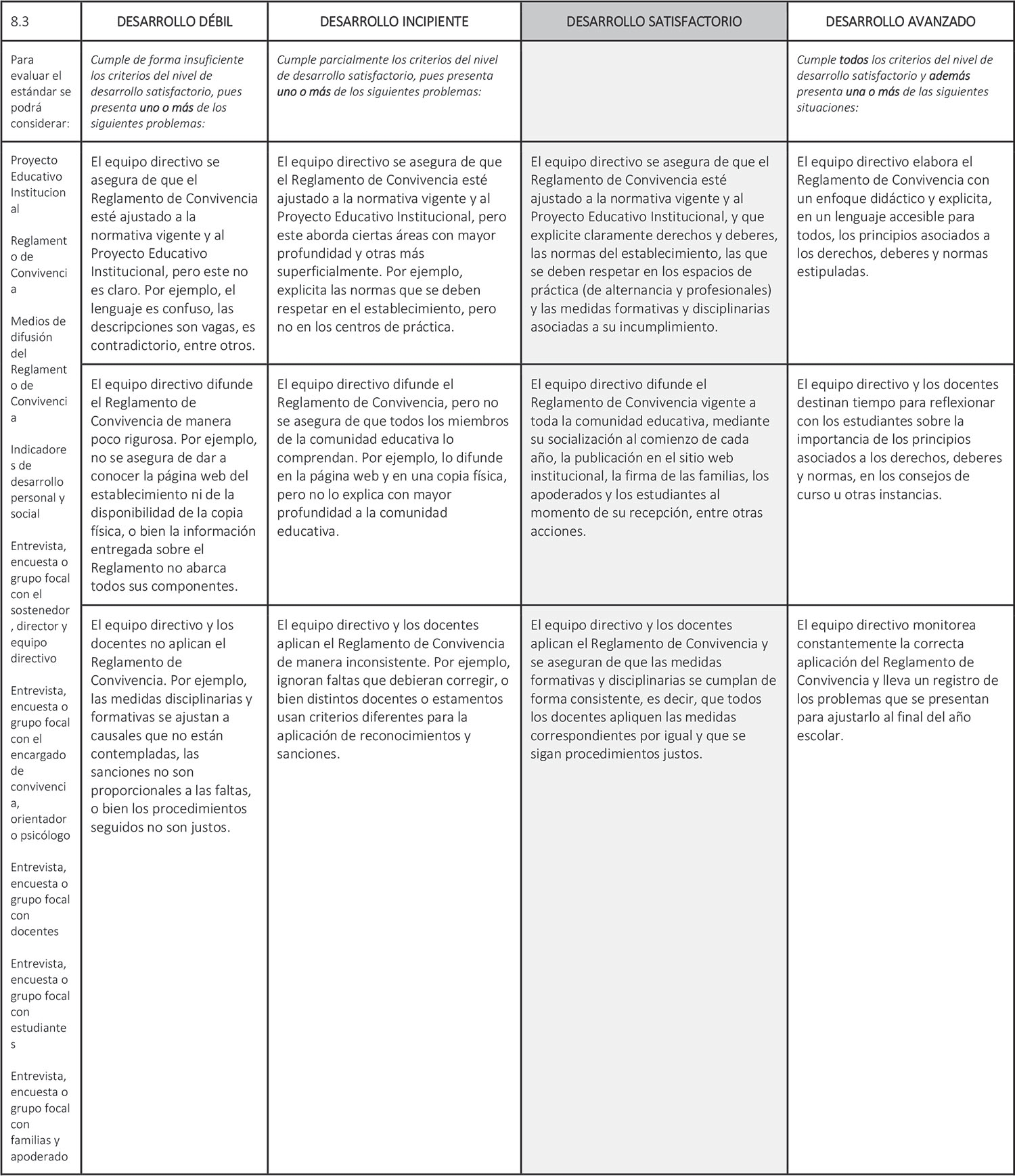 Estándar 8.3: El equipo directivo difunde y exige el cumplimiento del Reglamento de Convivencia, que explicita las normas para organizar la vida en común.(5)