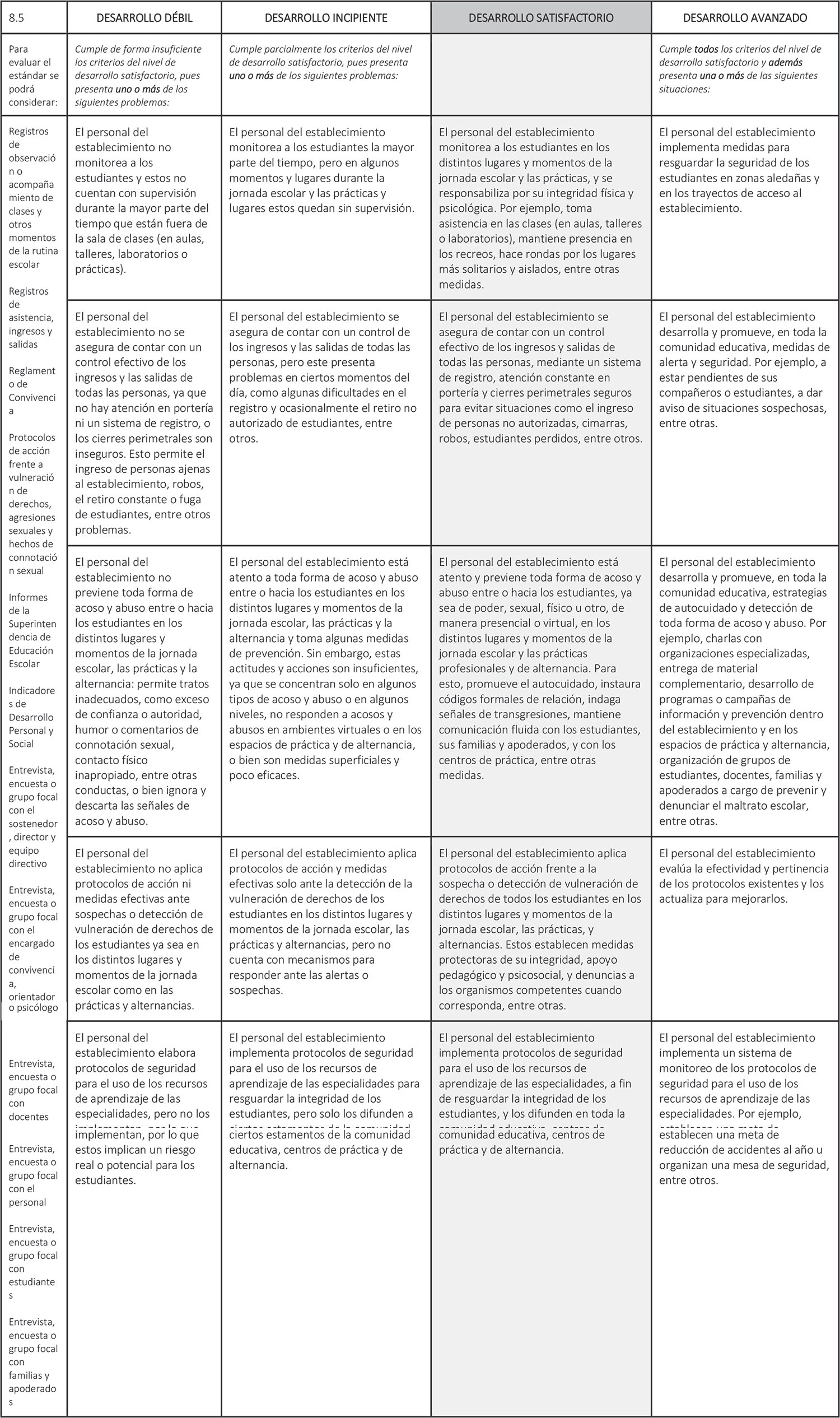 Estándar 8.5: El personal del establecimiento resguarda la integridad física y psicológica de todos los estudiantes durante el desarrollo de las actividades educativas.