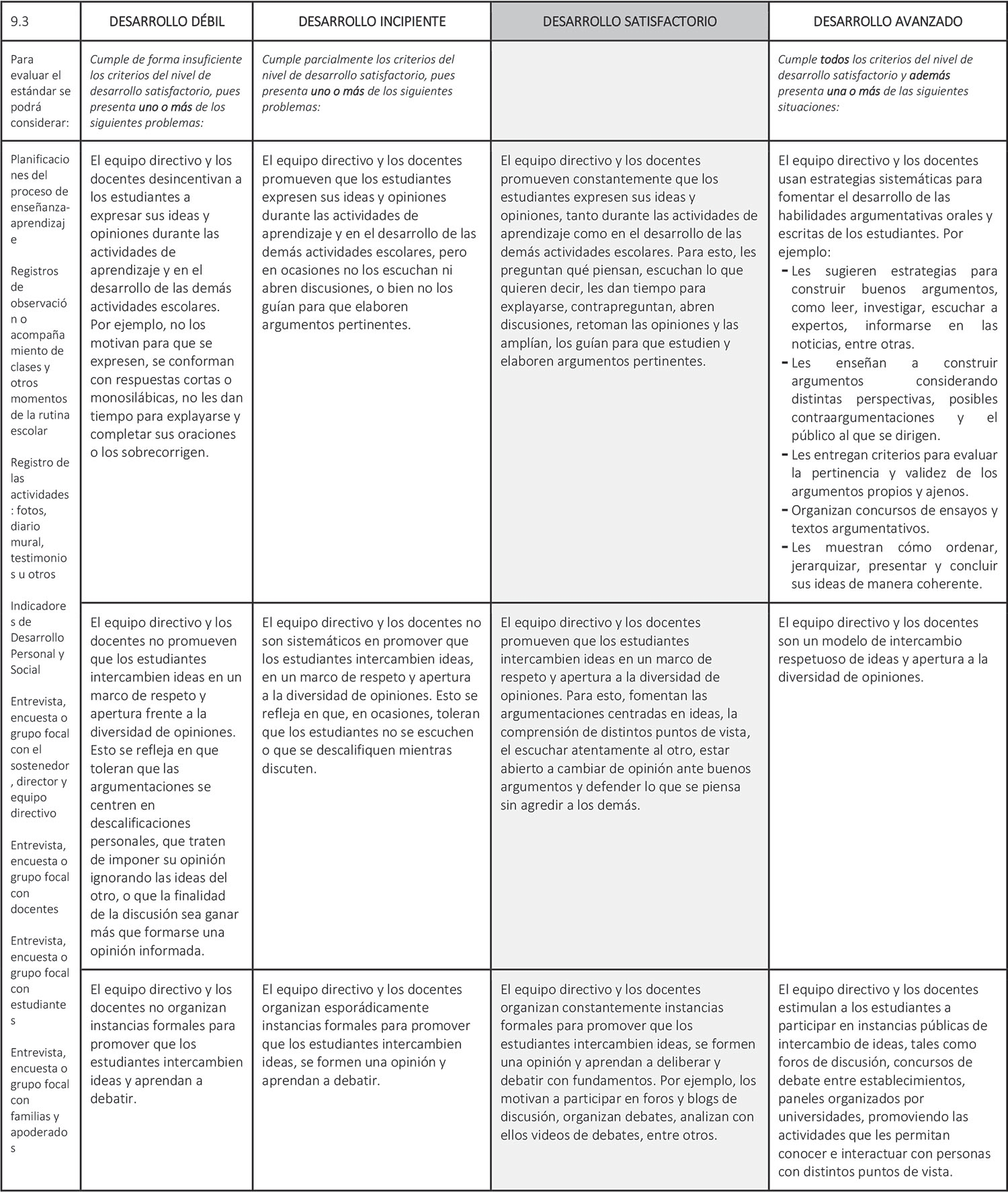 Estándar 9.3: El equipo directivo y los docentes fomentan entre los estudiantes la expresión de opiniones, la deliberación y el debate fundamentado de ideas.