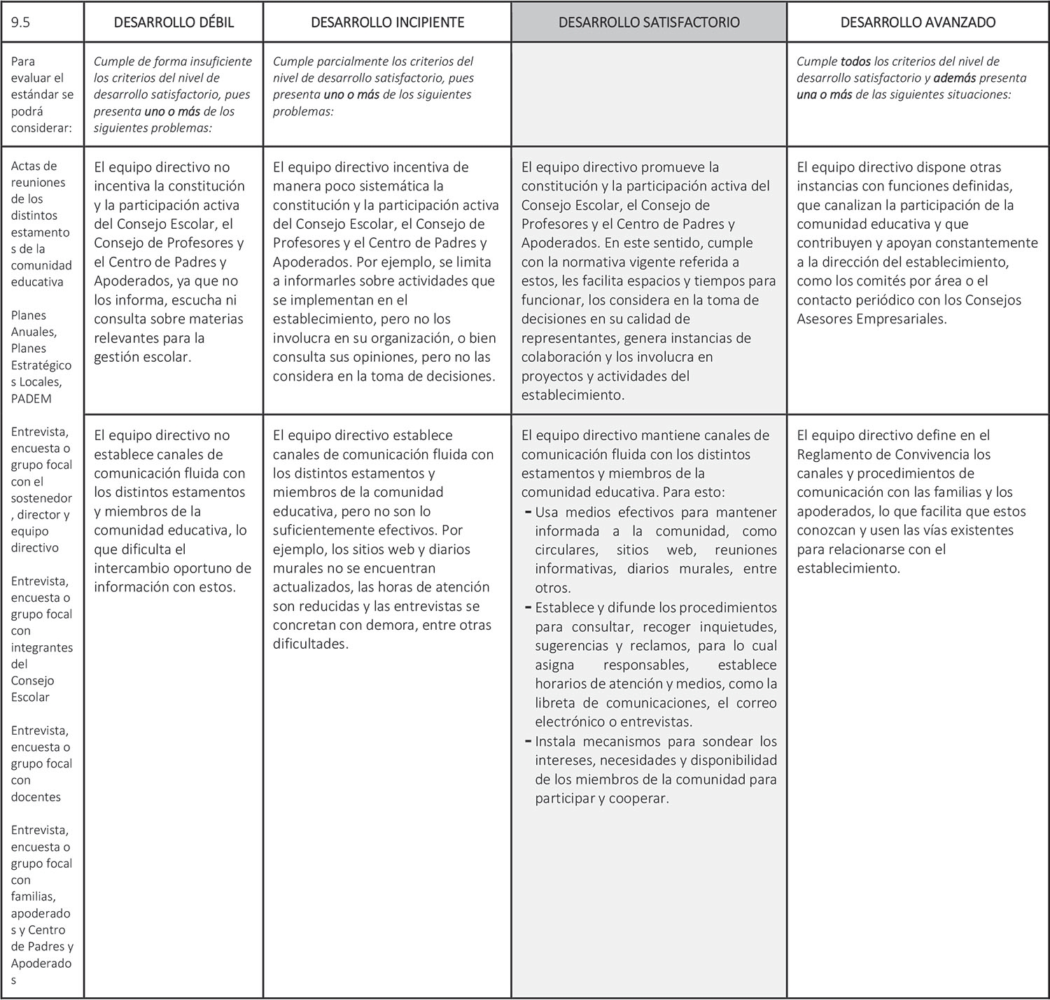 Estándar 9.5: El equipo directivo promueve la participación activa de los distintos estamentos de la comunidad educativa para apoyar el desarrollo del Proyecto Educativo Institucional.