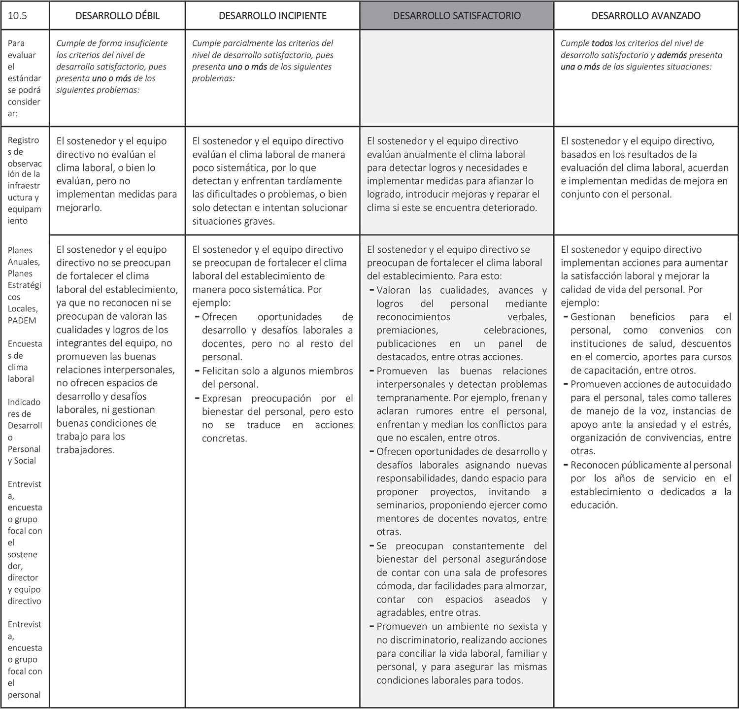 Estándar 10.5: El sostenedor y el equipo directivo promueven un clima laboral positivo.