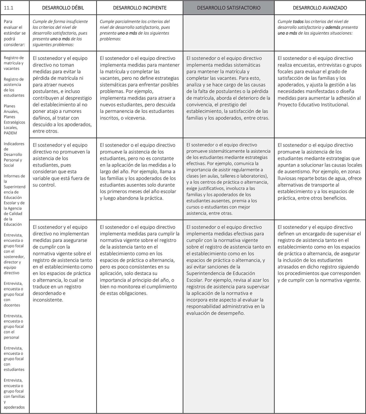 Estándar 11.1: El sostenedor o el equipo directivo gestiona la matrícula y la asistencia de los estudiantes.