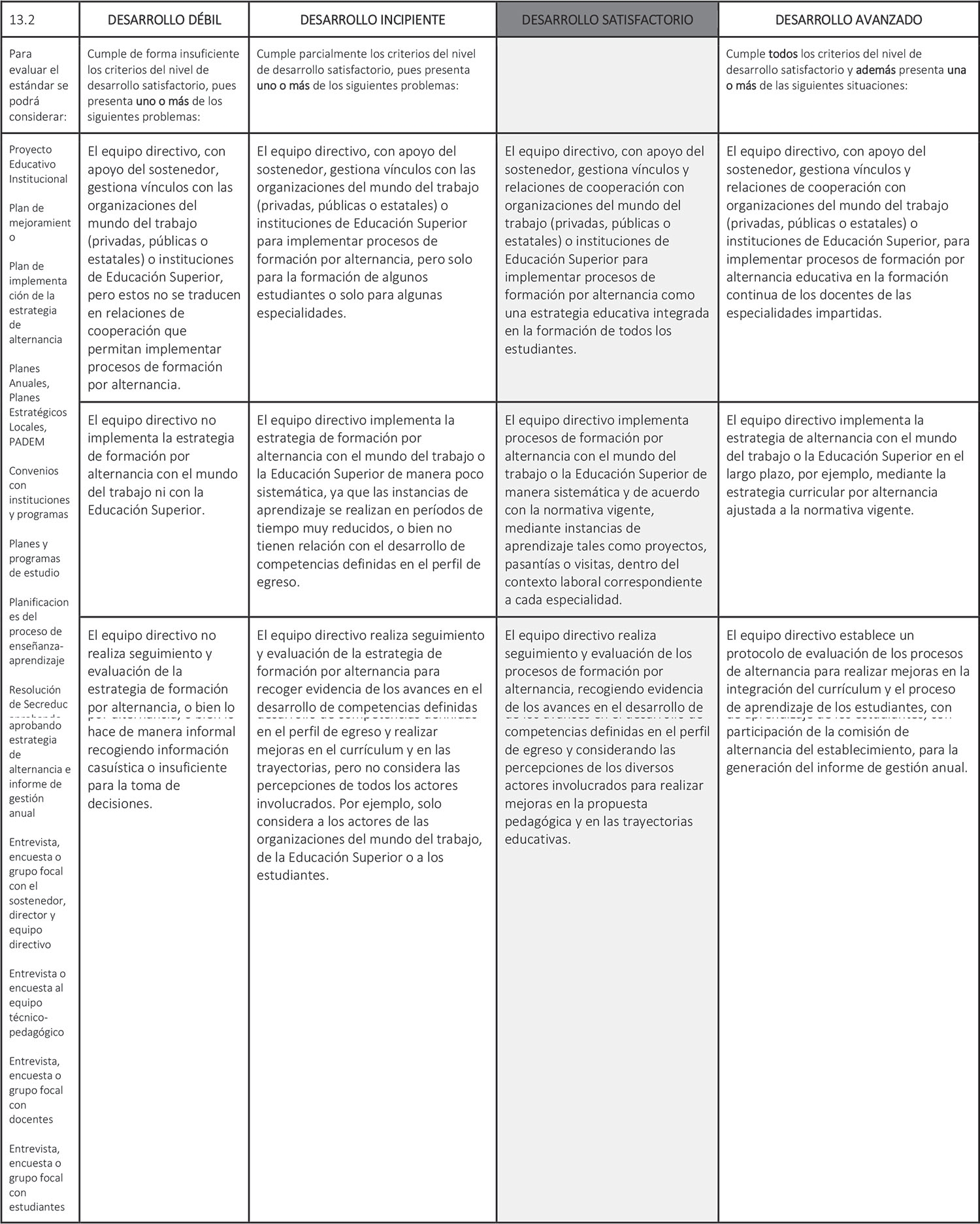 Estándar 13.2: El equipo directivo gestiona procesos de formación por alternancia como una estrategia integrada a las trayectorias educativas.