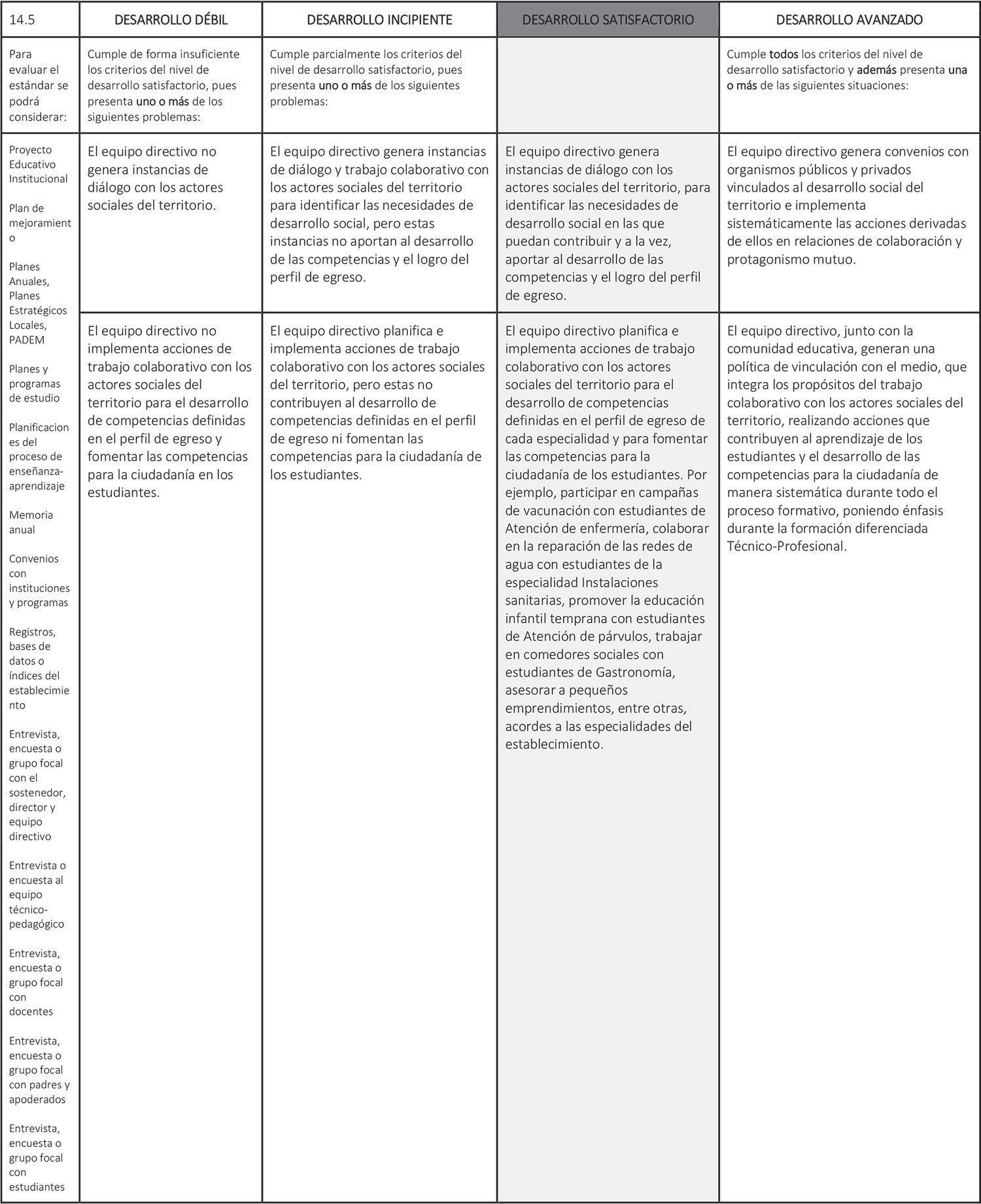 Estándar 14.5: El equipo directivo establece vínculos de colaboración estratégica con actores sociales del territorio para favorecer las trayectorias educativas y laborales de los estudiantes.