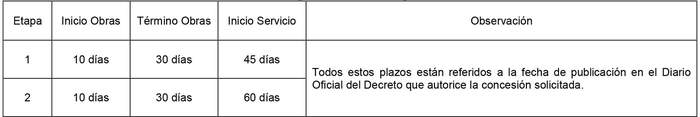 3. Los plazos serán los que se indican a continuación: