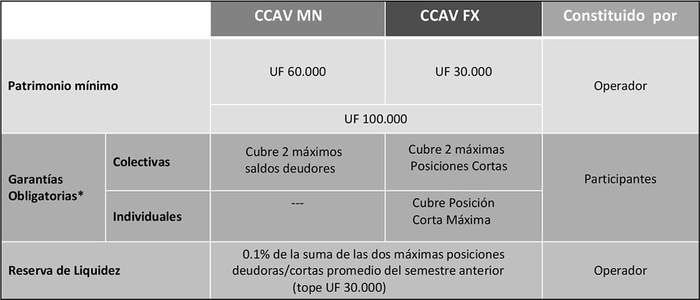 2 En el ciclo de operación de la CCAV MN, inicialmente el Operador debe establecer los resguardos financieros que los Participantes deben cumplir. En este caso, los resguardos consisten en Límites Estructurales, Límites Bilaterales y Multilaterales en moneda nacional, y garantías de carácter obligatorio, de acuerdo a lo establecido en el Título VII del Capítulo III.H.5 de este Compendio.