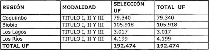 9) El presupuesto disponible para este llamado a postulación nacional extraordinaria en condiciones especiales para el desarrollo de proyectos en su modalidad Título I, Mejoramiento del Entorno; Título II, Mejoramiento de la Vivienda; y Título III, Ampliación de la Vivienda, del Programa de Protección del Patrimonio Familiar regulado por el DS N° 255 (V. y U.), de 2006, en los casos de las viviendas afectadas por plagas de xilófagos, será el siguienteResolución 212 EXENTA,