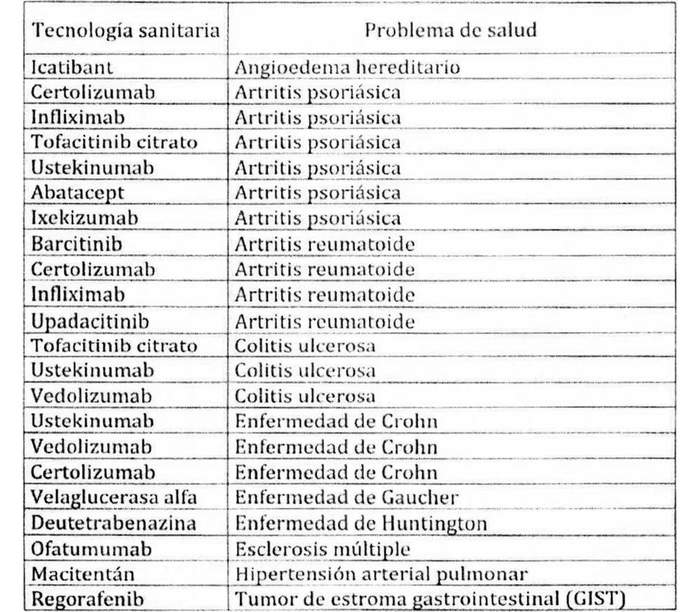 1° Iníciase el proceso de evaluación científica basada en la evidencia disponible para los siguientes diagnósticos y tratamientos asociados a las condiciones de salud señaladas: