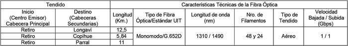 1.2 Enlaces de Fibra Óptica desde el Centro Emisor (Cabecera Principal) a Cabeceras Secundarias, según se indica a continuación: