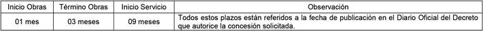 4. El periodo de vigencia de la concesión será de 30 años, contados desde la publicación en el Diario Oficial del decreto que la autorice.