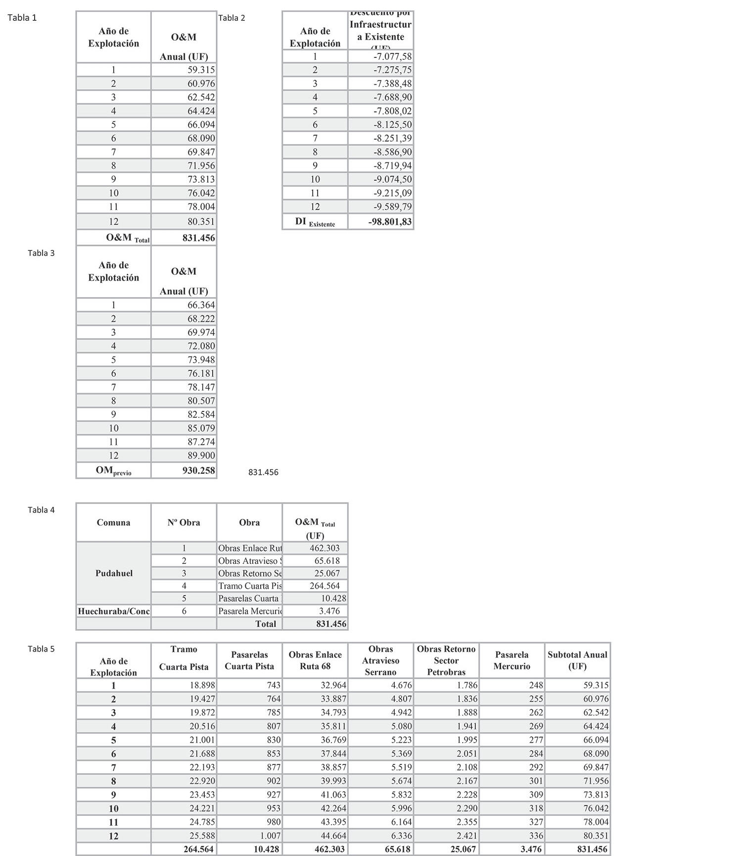 3.9 Por concepto de costos de conservación, mantenimiento, explotación y operación de las obras adicionales que se indican en la letra c) del numeral 1.5 del presente Convenio, con las condiciones y excepciones indicadas en el numeral 6.13 del "Modelo de Decreto Supremo que se dictará al efecto" adjunto al Oficio Ord. Nº 12689/21, de fecha 19 de mayo de 2021, del Inspector Fiscal, incluyendo los costos de los seguros de responsabilidad civil por daños a terceros y de seguro por catástrofe, para cada año de operación de las obras, se fijan, por obra, los montos anuales que se indican en la Tabla Nº 5 del Anexo Nº 1 que se adjunta al presente Convenio.