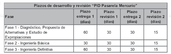 Plazos de desarrollo y revisión "PID Pasarela Mercurio"