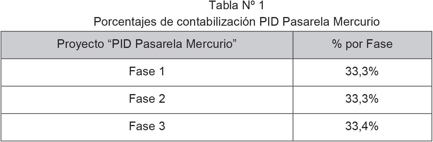 5.3.1 El monto por concepto del desarrollo del "PID Pasarela Mercurio" señalado en la letra a) del numeral 1.5 del presente Convenio, que resulte de la oferta del respectivo contratista en virtud de lo señalado en el literal f. de la minuta con los requerimientos mínimos que deben cumplir las Bases de Licitación Privada, adjunta al Oficio Ord. Nº 12689/21, de fecha 19 de mayo de 2021, más el IVA que corresponda, serán reconocidos porcentualmente de acuerdo al avance en la aprobación del referido proyecto, con fecha del último día del mes en que el Inspector Fiscal apruebe cada una de las fases que componen el "PID Pasarela Mercurio ", conforme a los porcentajes que se fijan en la siguiente Tabla Nº 1: