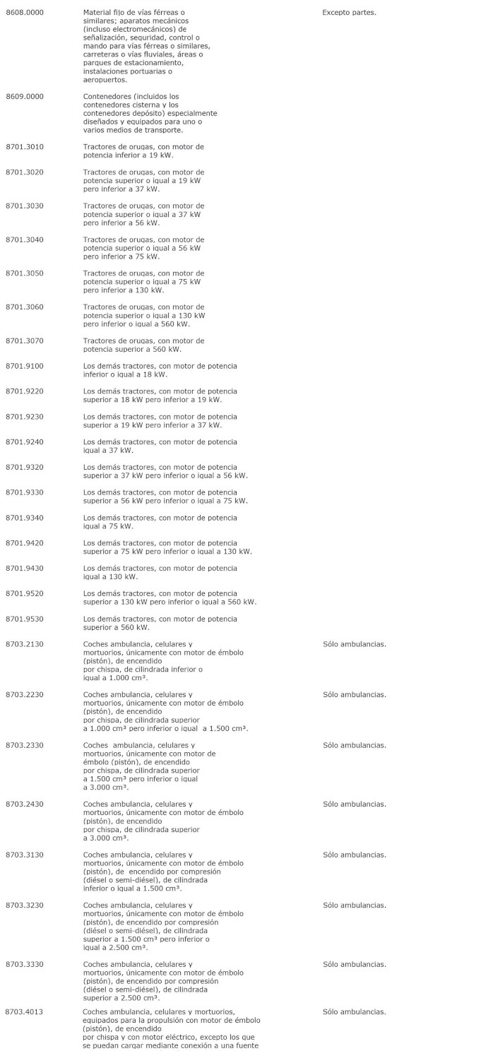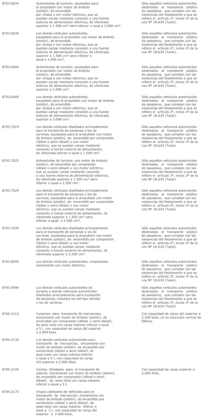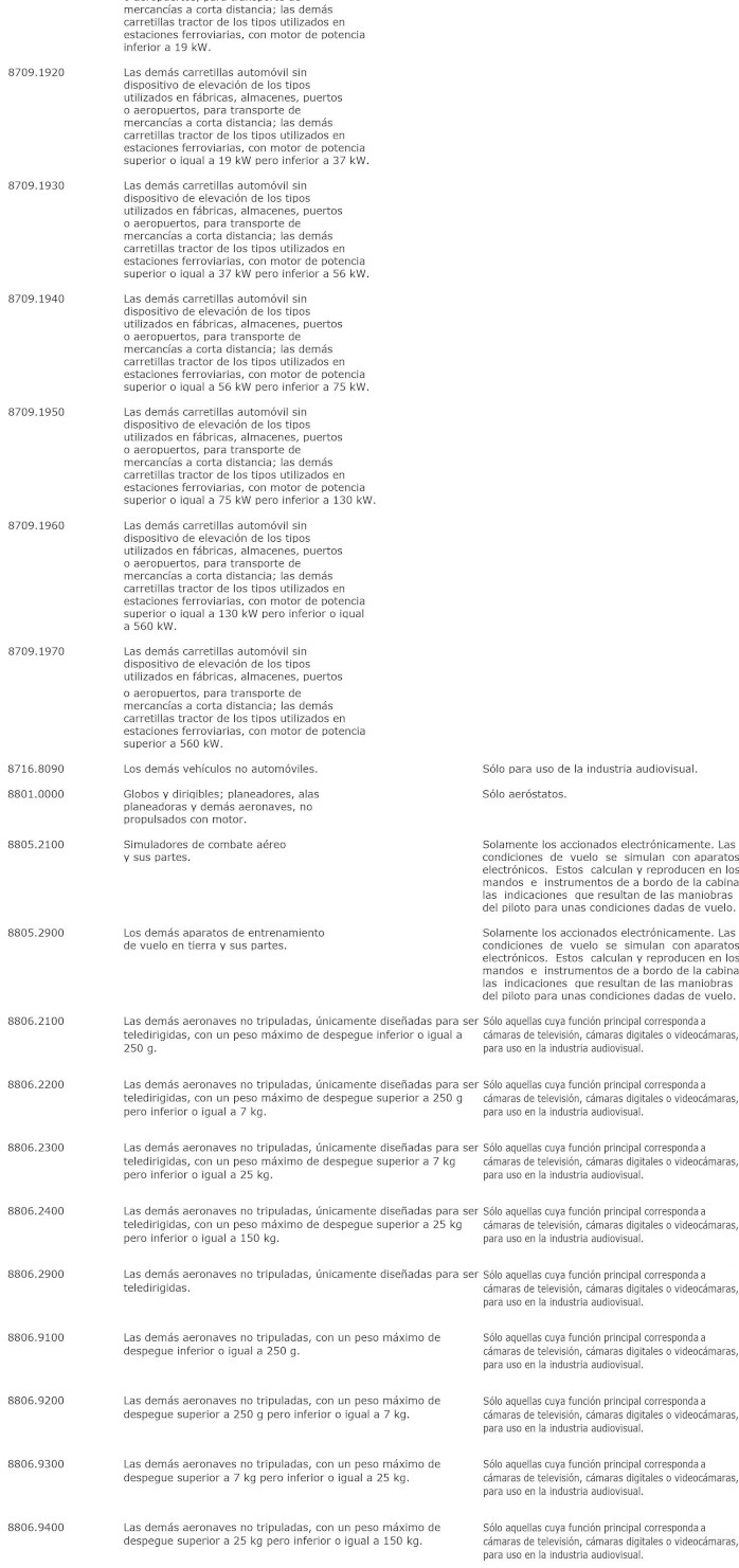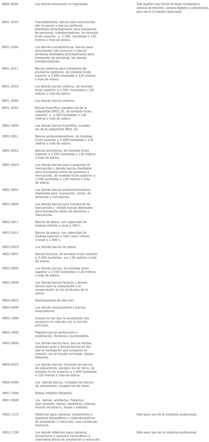 La letra a) del numeral 1° del Decreto 226 Exento, Hacienda, publicado el 03.08.2023, modifica la lista de bienes de capital contenida en la presente norma, sustituyendo los ítems arancelarios 8806.2100, 8806.2200, 8806.2300, 8806.2400, 8806.2900, 8806.9100, 8806.9200, 8806.9300, 8806.9400 y 8806.9900, su descripción y observaciones por los que la citada norma.