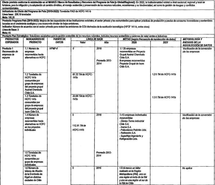 7. Por su parte, la Fase II del Plan de Gestión para la Eliminación de los HCFC (hidroclorofluorocarbonos) en Chile (HPMP-II), cuyo objetivo es lograr la reducción del consumo de los HCFC, cumpliendo las metas del Protocolo de Montreal de los años 2020 y 2021, se encuentra implementando acciones relacionadas con la eliminación del uso del HCFC-141b en el sector de espumas y desarrollando un programa de monitoreo.