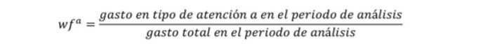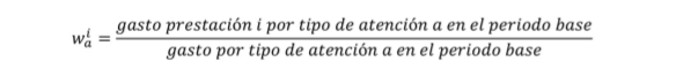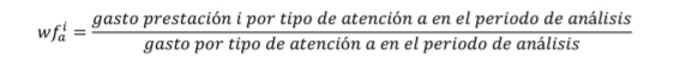 . Donde la ponderación de cada tipo de atención, ambulatoria u hospitalaria, en el gasto total, se calcula sobre el periodo de análisis: