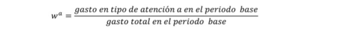 . El ponderador (w i/a) representa la proporción del gasto efectuado en la prestación i, respecto del gasto total efectuado en las prestaciones del tipo de atención a, durante el periodo base, es decir;