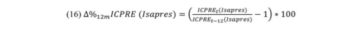 ICPRE(Isapres)= Índice de Costos en Prestaciones de salud MLE de las Isapres Δ%12m: Variación porcentual en 12 meses.
