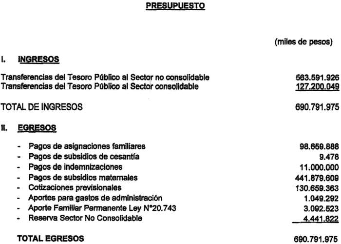 5.- El Presupuesto del Fondo Único de Prestaciones Familiares y Subsidios de Cesantía y su Anexo, para el ejercicio del año 2022, serán los siguientes:
