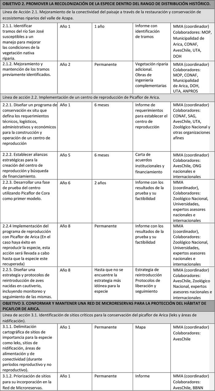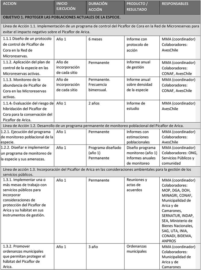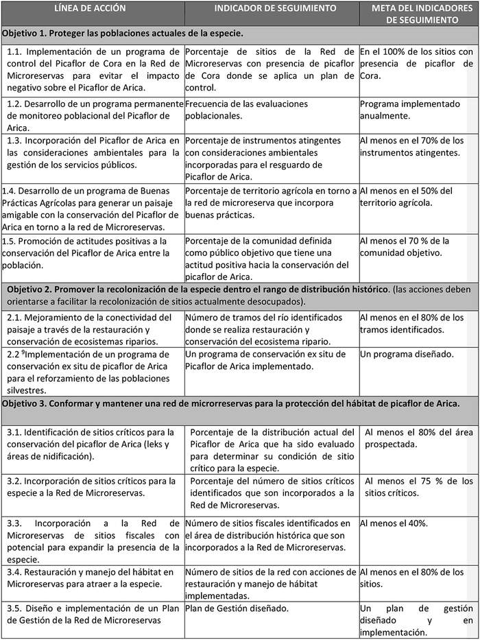 PLAN DE RECUPERACIÓN, CONSERVACIÓN Y GESTIÓN DEL PICAFLOR DE ARICA
