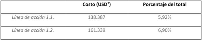 Cuadro 4: Costos por meta (dólares norteamericanos, USD), objetivo y línea de acción del plan y su porcentaje relativo del