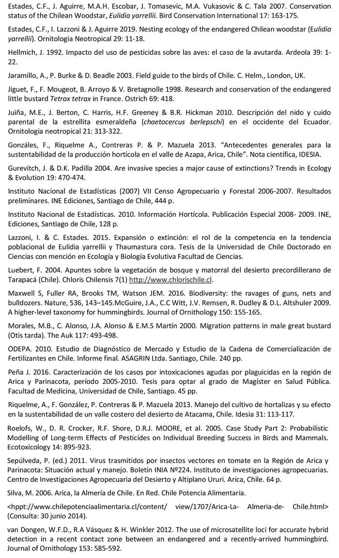 . Organizaciones no gubernamentales (AvesChile, Agrupación de Aves de Arica y Parinacota, ONG Picaflor de Arica, UMA Organización y Red de Observadores de Aves y Vida Silvestre, entre otros)
