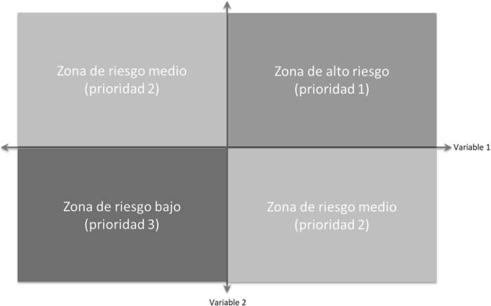 Al momento de incluir más de dos variables pueden generarse más zonas de alto riesgo y, sobre todo, de riesgo medio. Sin embargo, la idea es la misma, aquellos prestadores que más altos valores tienen en un mayor número de variables tienen una prioridad mayor que aquellos prestadores que tienen valores más bajos.