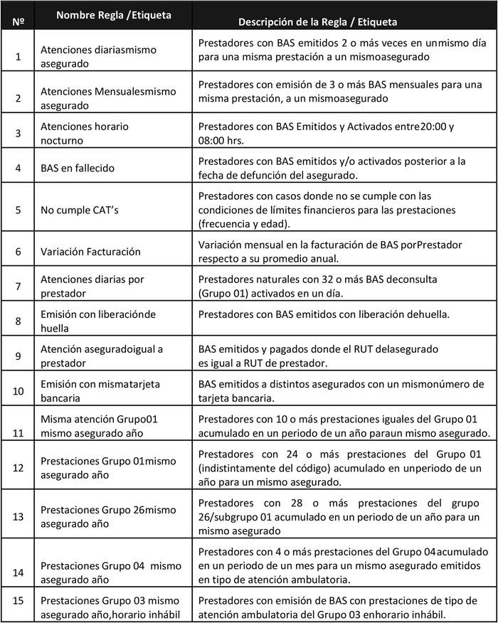 Con los datos obtenidos de estas fuentes, se procede a elaborar una serie de variables, detectando aquellas que se presentan con mayor frecuencia en prestadores que han desarrollado un incumplimiento a la normativa MLE.