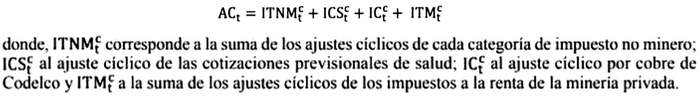 El Ajuste Cíclico Total de los ingresos del Gobierno Central consistirá en la suma de los ajustes cíclicos antes descritos, determinándose en consecuencia según la siguiente fórmula: