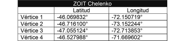Artículo segundo: Los límites del territorio de la Zona de Interés Turístico "Chelenko" están determinados por los siguientes vértices con sus coordenadas geográficas referenciales:
