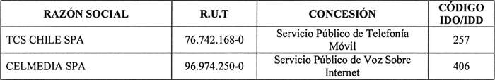 6. Que, debido a que una misma empresa, en algunos casos, posee diversas concesiones y para efectos de un uso eficiente de los códigos IDO/IDD, es necesario asignar códigos distintos para distintas concesiones;