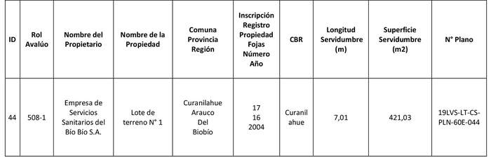 Artículo 7°.- Constitúyase, de acuerdo con lo que sobre el particular establece la Ley General de Servicios Eléctricos, las servidumbres para el establecimiento de la línea de transmisión en los predios que se indican a continuación:
