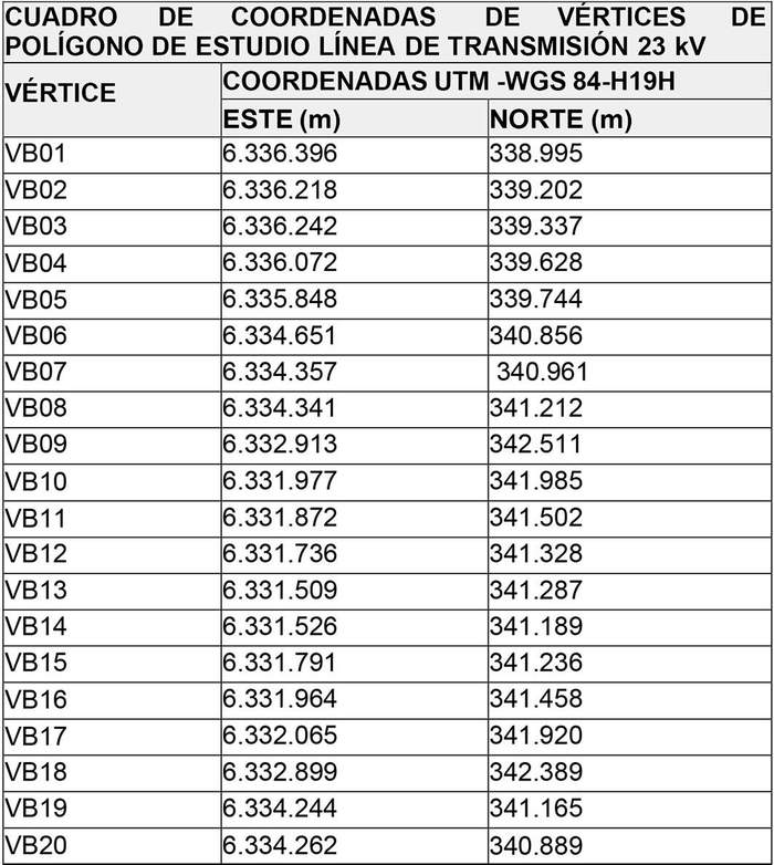 En relación con la solicitud de concesión eléctrica provisional, para la línea de transmisión en estudio se ha contemplado una franja de seguridad preliminar de 50 metros a cada lado del trazado propuesto para la Línea.