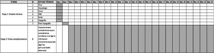 3º El plazo de la concesión provisional será de dos años, contados desde la publicación en el Diario Oficial de la resolución que otorga la concesión eléctrica provisional, iniciándose en dicho momento los estudios que se autorizan, los que se realizarán de manera conjunta y/o simultánea, de acuerdo con el siguiente cronograma: