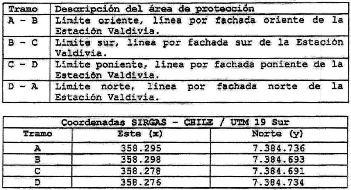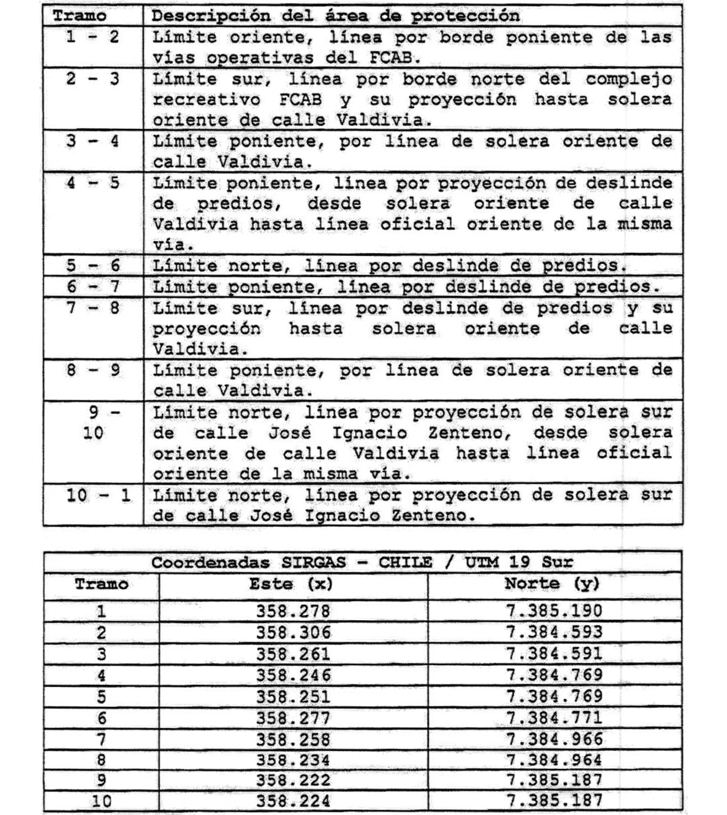 3. Que, el Conjunto Ferroviario se ubica en el sector sur de la comuna de Antofagasta y corresponde al Patio Sur de la red del Ferrocarril de Antofagasta a Bolivia. Se emplaza en la zona ZUDC 2 y 3, Zona Urbanizable de Desarrollo Condicionado y de Protección y Uso Ferroviario según el plan regulador comunal (PRC) vigente desde el año 2002. Dentro del conjunto se encuentra la Estación Valdivia, reconocido como Inmueble de Primer Orden por el PRC, el que ha sido homologado a Inmueble de Conservación Histórica por el Minvu. Los componentes a declarar corresponden al patio, la Estación de Pasajeros, las cocheras y talleres, los carros y coches de pasajeros, las vías férreas, las palancas, la losa de andén y el letrero de la estación.