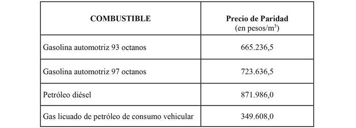 FIJA PRECIOS DE PARIDAD PARA COMBUSTIBLES DERIVADOS DEL PETRÓLEO